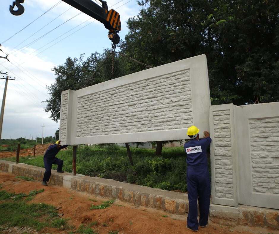Precast compound wall is a high-quality precast concrete walling system featuring natural-looking stone textures and architectural form finishes on both sides of the wall.