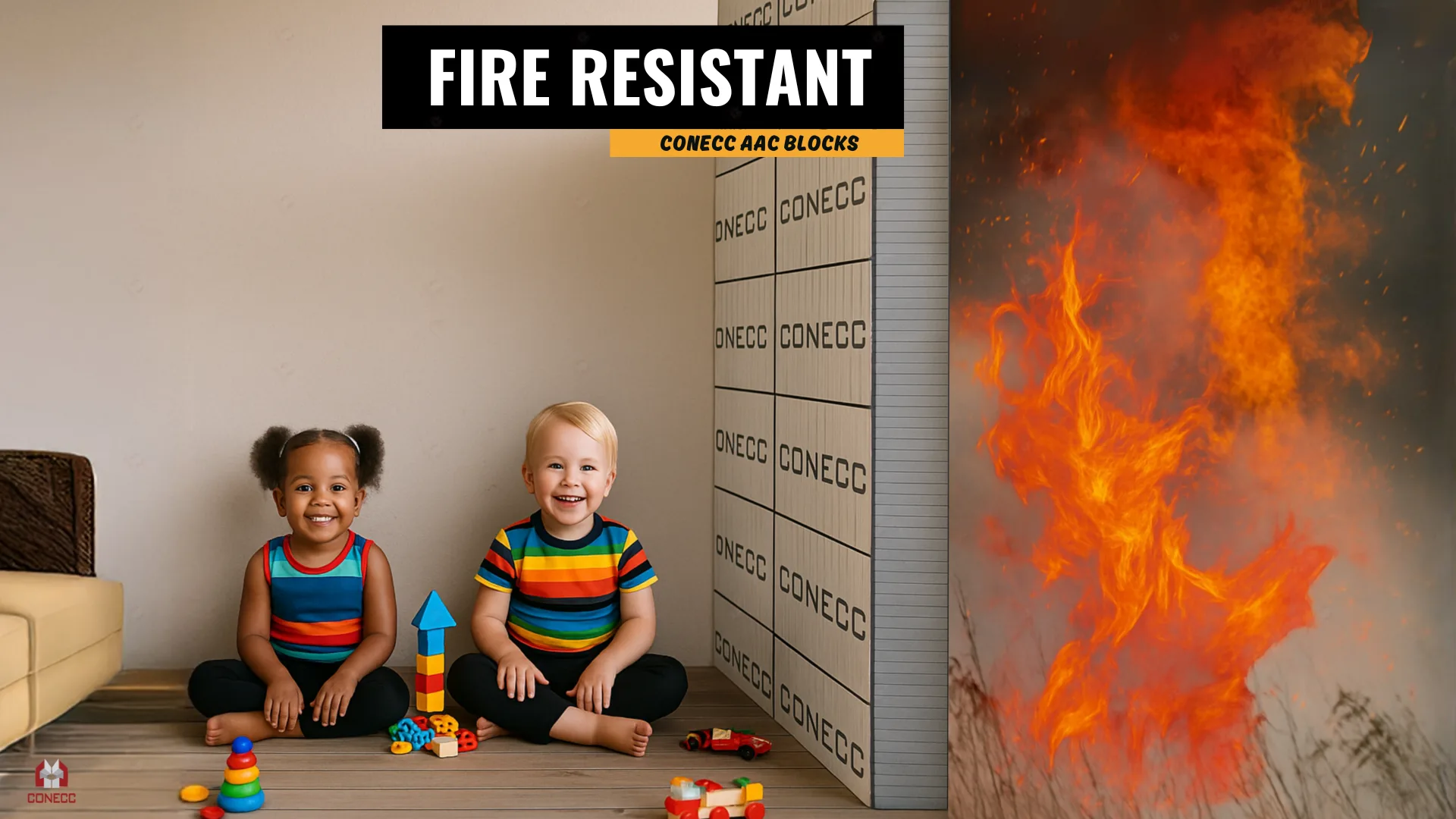 The AAC block material is non-combustible and provides fire resistance of over six hours, depending on the block consistency, and up to a thousand degrees Celsius, compared to other blocks.