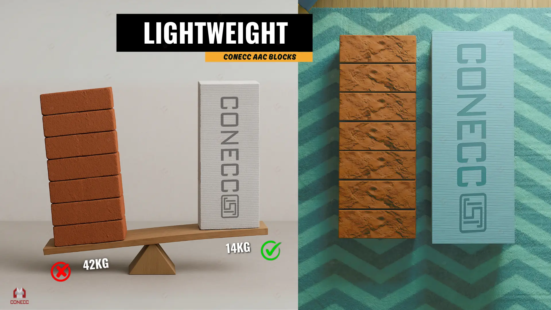 AAC blocks are about 28% lighter and 10 times larger than traditional bricks. This unique property facilitates easy installation and gives the flexibility for cutting and shaping relatively easily. AAC blocks have consistent dimensions, thereby, increasing ease of laying and making the construction process fast.